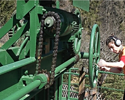 Playing the Building HammerhofReni HofmüllerInstallation in Zusammenarbeit mit Nicole Pruckermayr und Renate Mihatsch im Rahmen von Social Sound Systems, Kuratorin: Andrea Sodomka initiiert vom Institut für Kunst im Öffentlichen Raum Steiermark und mit großartiger Unterstützung von Herrn Ing. Neuper & Frau Neuper, und der Belegschaft vom E-Werk Neuper, Hammerhof, Unterzeiring Eröffnung der Installation: Sonntag, 25.4.2010 Beginn: 12.30 Uhr Anhand der von Reni Hofmüller betriebenen Klangforschungen am Objekt des Kleinwasserkraftwerks in Unterzeiring entstanden Klang-Video-Miniaturen am/im/um das Kraftwerk. "Playing the Building" in Unterzeiring besteht aus einzelnen Miniaturkompositionen, die über das Werksgelände verstreut sind. Die BesucherInnen flanieren durch das Gelände und erkunden einen Raum für sich, der ihnen normalerweise so nicht zugänglich ist. Am jeweiligen Ort des Entstehens jedes Klangs zeigt ein kleiner Monitor ein Video, dadurch wird die Komposition und ihre Erzeugung nachvollziehbar gemacht. Durch die ausschliessliche Verwendung von Klängen, die am jeweiligen Ort zu finden sind, klingt jede Umsetzung des Konzepts "Playing the Building" anders, die Grundstruktur bleibt die gleiche. Playing the Building "Zum jetzigen Zeitpunkt verwende ich ziemlich einfache Technologie. Ich nehme auf meinem Laptop über eine externe Soundkarte auf, wo 2 Piezos (piezo-elektrische oder Kontaktmikrophone) direkt verkabelt werden können. Mit einem Cellobogen spiele ich auf Metall, Drähten und drahtähnlichen Objekten, und ich verwende alles Material, das ich an dem Ort finde, das ich inspirierend finde. Ich nehme die Klänge auf und werde von Nicole Pruckermayr beim Klangforschen gefilmt. Die Aufnahmen direkt von den Mikrophonen und die Klangräume, die beim Filmen festgehalten werden, werden im Video übereinandergelegt und bilden gemeinsam das Material, die Miniaturkompositionen für die Klanginstallation." Reni Hofmüller, 2009 Ort: Kleinwasserkraftwerk Unterzeiring Unterzeiring 15 8762 Unterzeiring